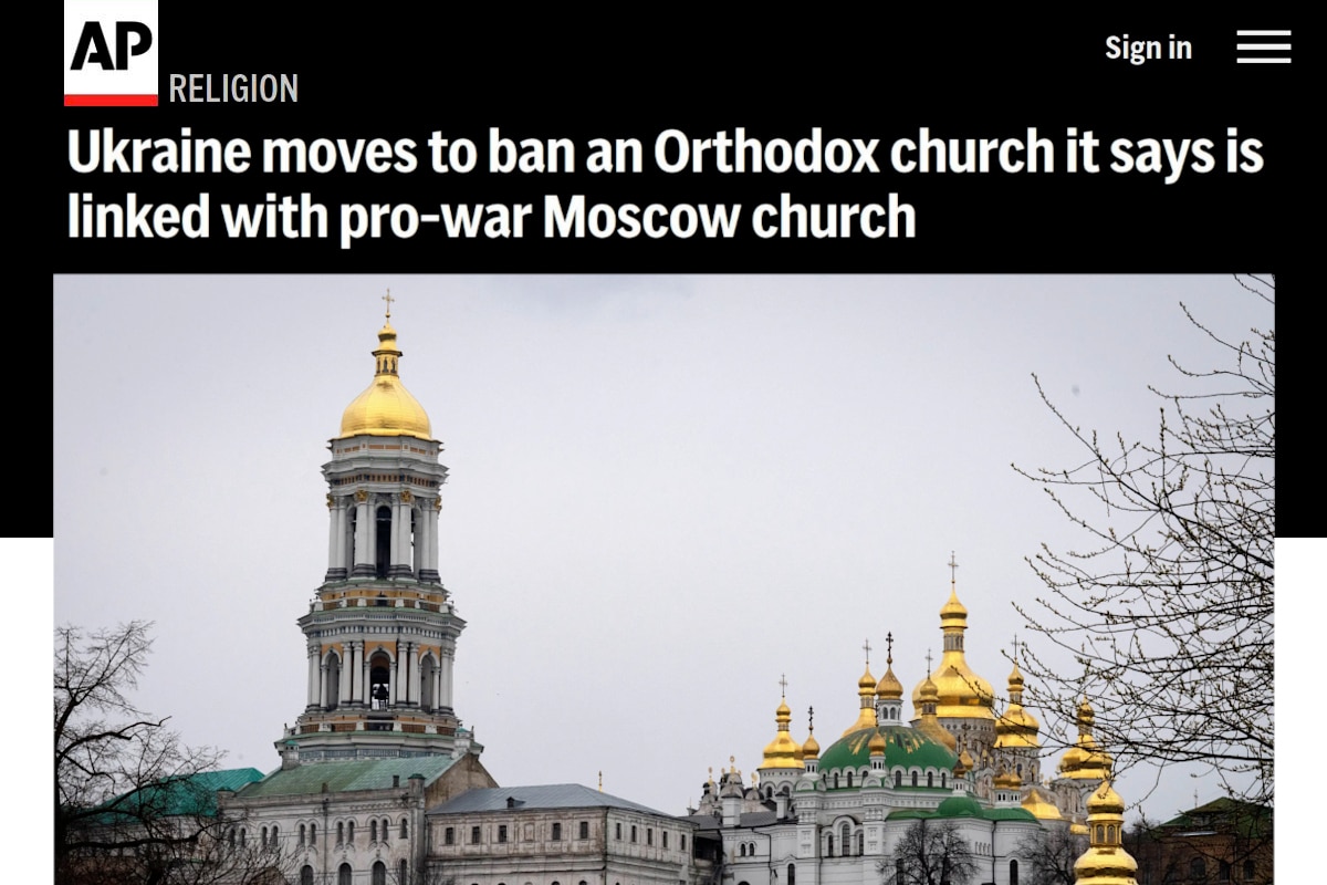 AP: “Chính quyền Ukraine đang có các bước để cấm một Giáo hội Chính thống giáo mà nó gọi là thân Nga.” Trong bài có các mục (a) cáo buộc liên hệ Nga là gây tranh cãi, và (b) hoạt động ly giáo do chính quyền thúc đẩy.