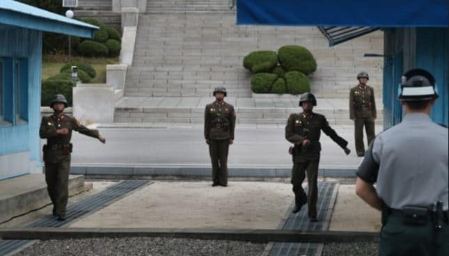 Lính Bắc Hàn canh gác ở khu vực DMZ ở phía chế độ Bình Nhưỡng kiểm soát.