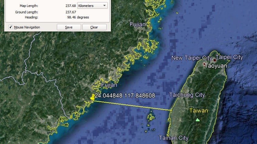 Tọa độ của vị trí là 24°02’41,5″N 117°50’55,0″E. Nơi này cách đảo Penghu khoảng 183 km và cách Quần đảo Đông Sa của Đài Loan (quần đảo Pratas) 386 km.