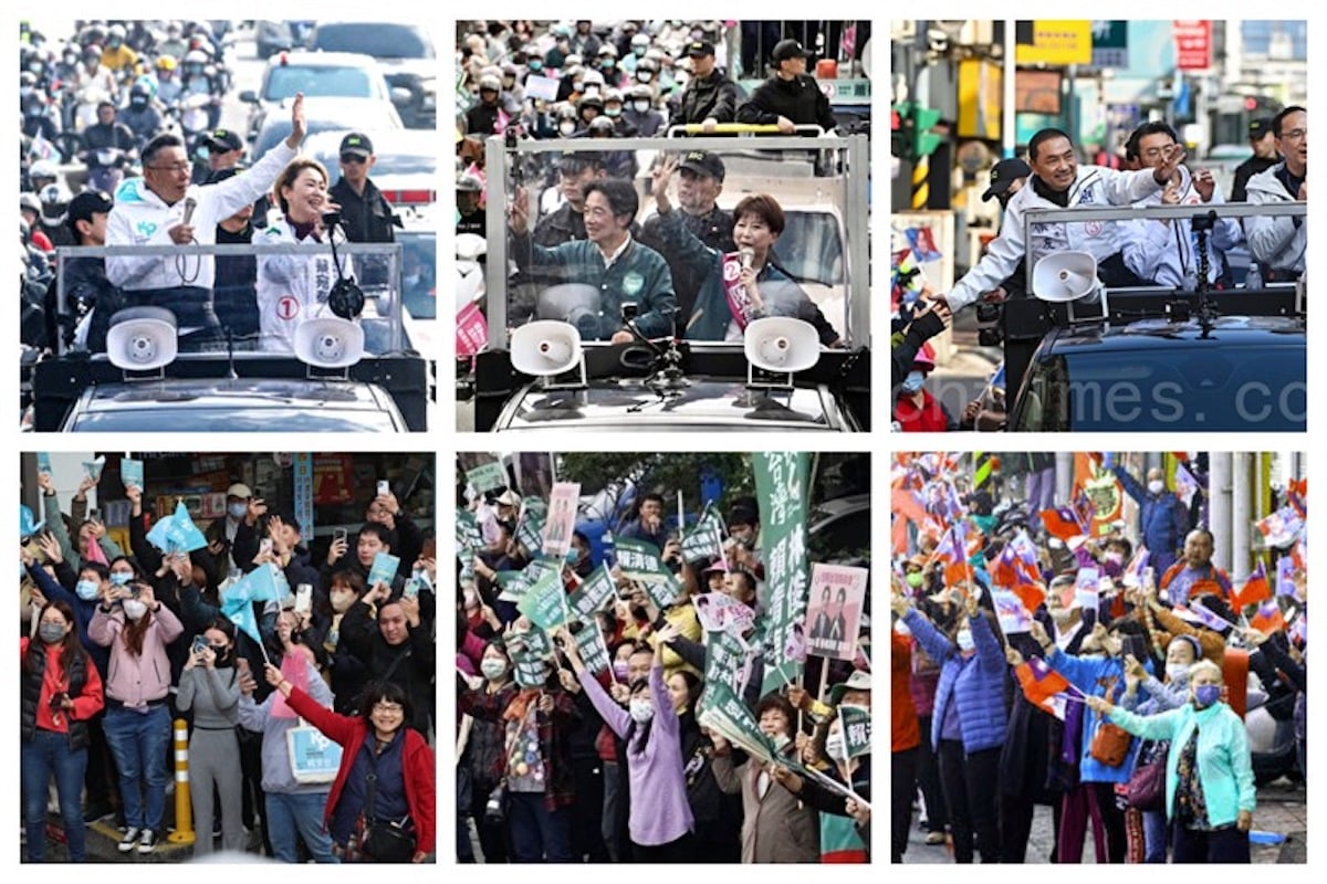 Cuộc bầu cử tổng thống và lập pháp năm 2024 của Đài Loan đã bước vào thời điểm cuối cùng, các ứng cử viên từ tất cả các đảng phái đã cử đoàn xe đi trên các đường phố để thu hút phiếu bầu. (Ảnh: Epoch Times tổng hợp)