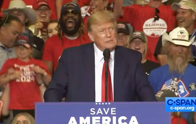 Cựu Tổng thống Mỹ Donald Trump phát biểu trong một hoạt động vận động tranh cử ngày 28/5/2022 ở Casper bang Wyoming. (Nguồn: Ảnh chụp màn hình C-SPAN)