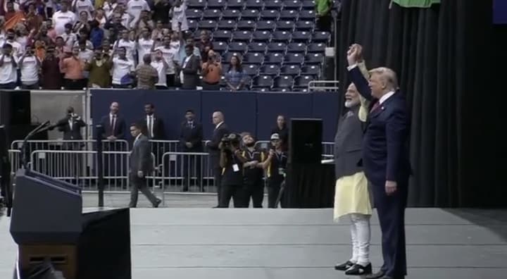 Tại sự kiện “Howdy Modi” của ông Modi tại Houston vào năm ngoái, nhà lãnh đạo Ấn Độ đã ôm hôn người đồng cấp Mỹ của mình và dường như ủng hộ chiến dịch tái tranh cử của ông trước đám đông 50.000 người.