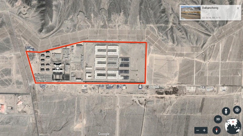 Khu kiến trúc trên là một trại lao động bên ngoài thị trấn Đạt Bản Thành (Dabancheng) ở Tân Cương. Cách đây vài ngày phóng viên BBC đã ghé thăm, để tránh bị cảnh sát đeo bám, phóng viên BBC đã đặc biệt chọn thời điểm đến Ô Lỗ Mộc Tề (Urumqi) vào tờ mờ sáng, sau đó di chuyển đến Đạt Bản Thành. Tuy nhiên, khi phóng viên đến Đạt Bản Thành đã lập tức xuất hiện ít nhất 5 chiếc xe chở cảnh sát mang đồng phục và thường phục bám theo.