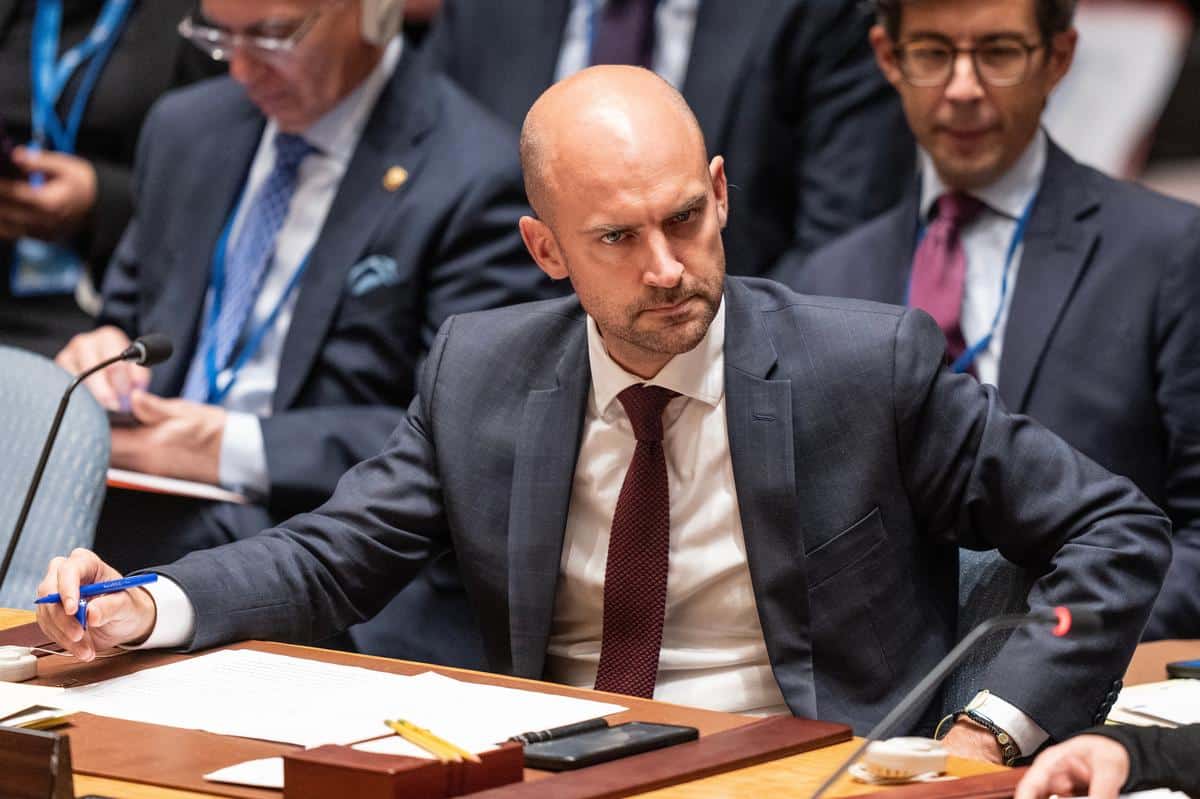 Ông Jean-Noel Barrot khi còn giữ chức Bộ trưởng Bộ Châu Âu và Ngoại giao tham dự cuộc họp của Hội đồng Bảo an về Ukraine tại Trụ sở Liên Hiệp Quốc ở New York vào ngày 24 tháng 9 năm 2024. (Ảnh: lev radin/Shutterstock)