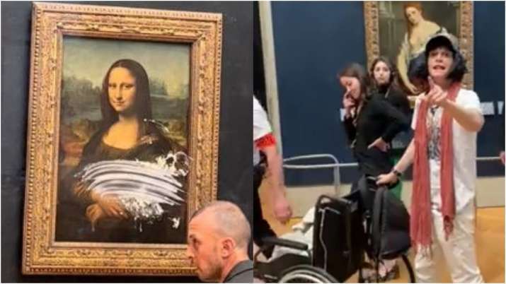 Một video do người dùng Twitter Lukeee đăng tải cho thấy cảnh nhân viên bảo tàng lau bánh kem trên tấm kính chống đạn bên ngoài bức họa “Nụ cười nàng Mona Lisa”, trong khi một đoạn video khác cho thấy một người đàn ông mặc đồ trắng đang bị áp giải đi.