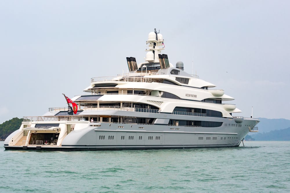 Siêu du thuyền Ocean Victory. Du thuyền 7 tầng Mega dài 140 m thuộc sở hữu của tỷ phú Nga Viktor Rashnikov (Ảnh: Phuketian.S/ Shutterstock)