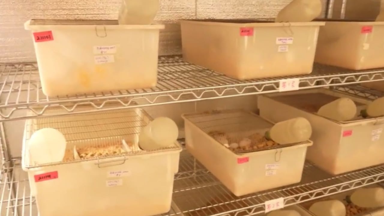 Chất chứa trong chai và các vật chứa khác tại phòng thí nghiệm sinh học ở Fresno bang California (Cơ quan Ridley).