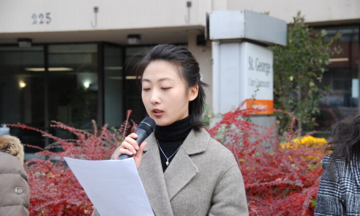 Ngày 18 tháng 2 năm 2022, cô Lưu Minh Viên, sinh viên ngành hoạt hình máy tính tại Đại học Sheridan, đã tổ chức một buổi họp báo trước Lãnh sự quán Trung Quốc tại Toronto, Canada. Cô kêu gọi lập tức trả tự do cho người mẹ của mình đang bị giam giữ ở Trung Quốc vì đức tin của bà vào Pháp Luân Công.