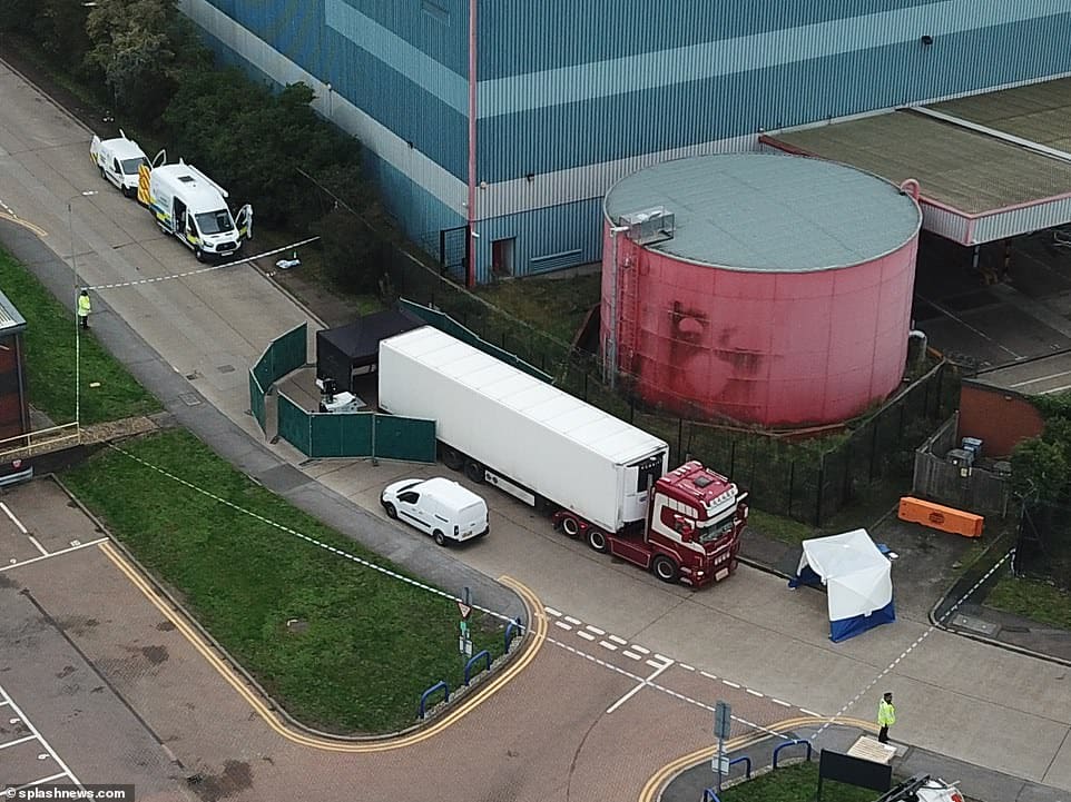 Chiếc xe tải đông lạnh chở 39 thi thể bên trong, bị cảnh sát phát hiện hôm 23/10 (giờ địa phương) khi đang đậu tại khu công nghiệp ở Essex, phía Đông London, đến Anh bằng đường biển từ thị trấn Zeebrugge, Bỉ một ngày trước đó.