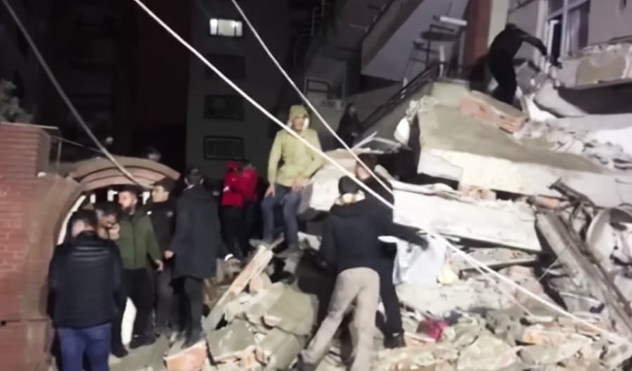 Tại thành phố Malatya của Thổ Nhĩ Kỳ, một nhân viên cứu hộ đã bò vào một tòa nhà bị sập, cố gắng xác định một người sống sót bị mắc kẹt dưới đống đổ nát, trong đoạn phim do Cơ quan Quản lý Khẩn cấp và Thảm họa Thổ Nhĩ Kỳ (AFAD) công bố.