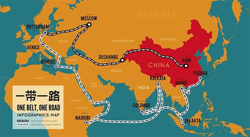 Sáng kiến BRI lần đầu tiên được công bố vào năm 2013 bởi người đứng đầu ĐCSTQ Tập Cận Bình. Chiến lược này được chia thành hai phần: một phần trên đường bộ dọc theo Vành đai Kinh tế Con đường Tơ lụa chạy qua Trung Á, Trung và Đông Âu đến Tây Âu; một phần trên đường thủy qua “Con đường Tơ lụa biển” chạy qua Biển Đông và Ấn Độ Dương, hướng về phía tây qua Đông Nam Á đến Nam Á, Trung Đông, Châu Phi và Châu Âu.