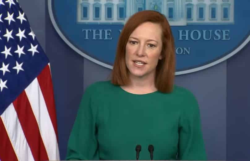 Thư ký báo chí Nhà Trắng Jen Psaki trong cuộc họp ngày 15/3 (Ảnh: Getty Images)