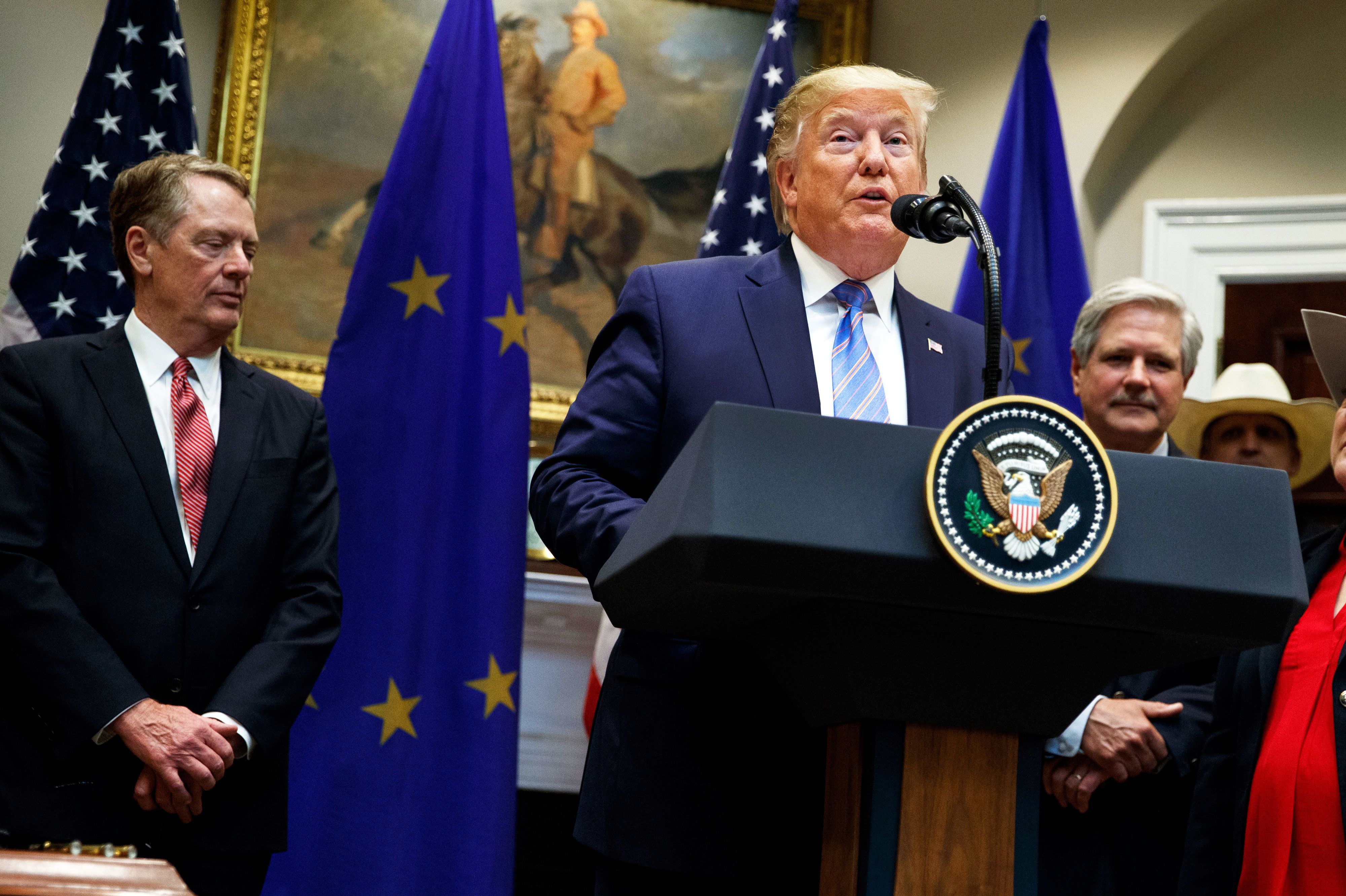 Tại Phòng Roosevelt, Tòa Bạch Ốc, cùng với những nông dân Mỹ đội mũ cao bồi, ông Trump đã chứng kiến Đại diện Thương mại Mỹ Robert Lighthizer và Đại sứ EU tại Mỹ Stavros Lambrinidis, đại diện EU Jani Raappana ký kết thỏa thuận thịt bò, giúp gia tăng xuất khẩu thịt bò Mỹ sang EU.