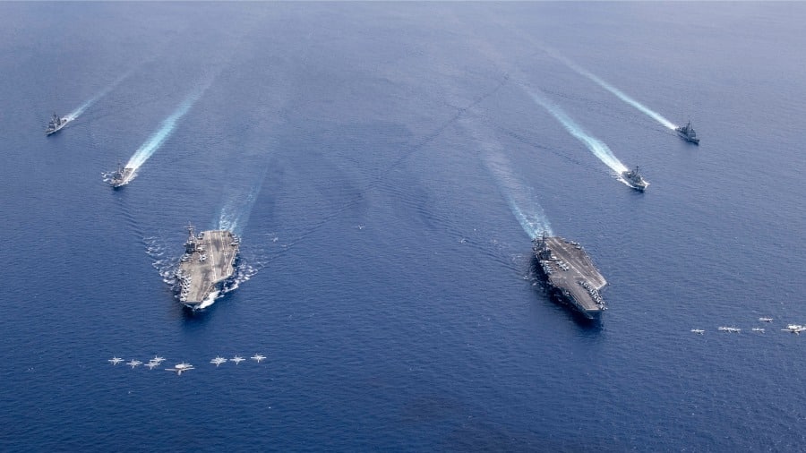 Tình hình eo biển Đài Loan ngày càng căng thẳng khi mới đây tàu sân bay Liêu Ninh của ĐCSTQ tập trận tại Thái Bình Dương, đồng thời phái hàng loạt máy bay quân sự thâm nhập vùng không phận Đài Loan (Nguồn: Hải quân Mỹ).