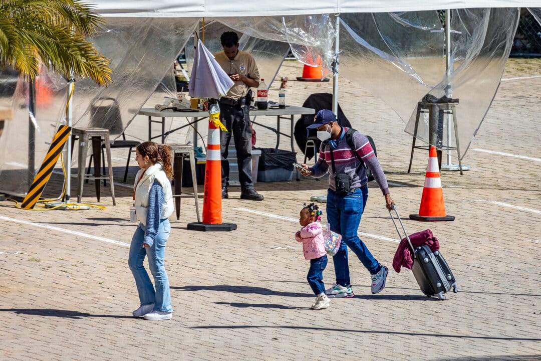 Những người nhập cư bất hợp pháp tại nơi trú ẩn do các nhóm phi lợi nhuận cung cấp ở San Diego, vào ngày 22 tháng 2 năm 2024. (Ảnh: John Fredricks/The Epoch Times)