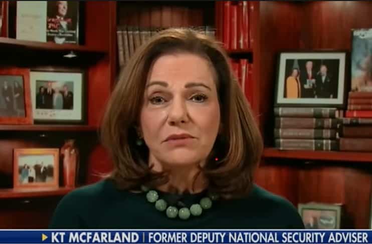 Bà McFarland nhận định trong một cuộc phỏng vấn với chương trình “China Insider” của EpochTV tại Hội nghị Hành động Chính trị Bảo thủ (CPAC) ở Orlando vào ngày 26/2: “Mối đe dọa chiến lược là từ Trung Quốc. Mối đe dọa chiến lược lớn nhất là Trung Quốc – Nga hợp tác cùng nhau; đó là công nghệ của Trung Quốc, tiền của Trung Quốc, sự tàn nhẫn của Trung Quốc – như các bạn biết đấy, ngoại giao chiến lang – kết hợp với tài nguyên thiên nhiên của Nga và khả năng quân sự của Nga, đó là một đối thủ thực sự đáng gờm đối với Hoa Kỳ.”