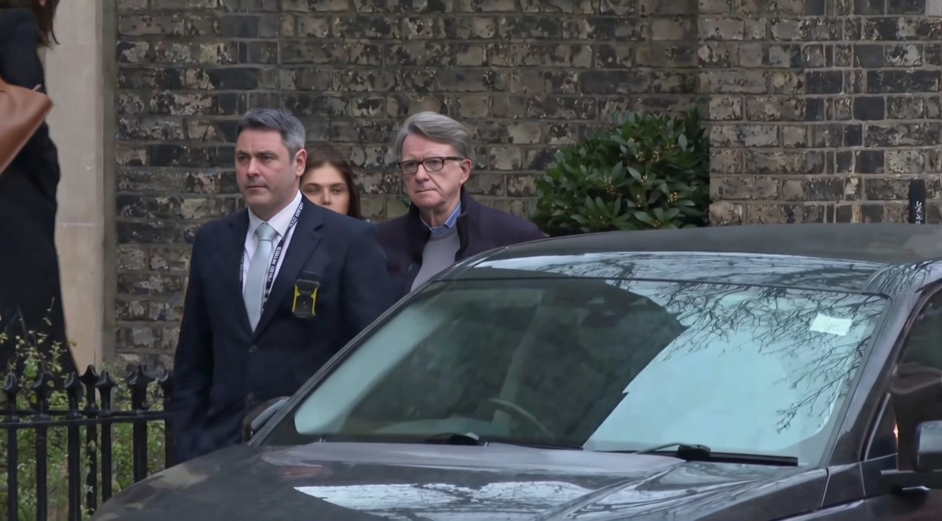 Ông Peter Mandelson, 72 tuổi, cựu Đại sứ Anh tại Mỹ, xuất hiện trong đoạn video do BBC ghi lại, khi bị cảnh sát áp giải lên xe tại khu Camden, London.