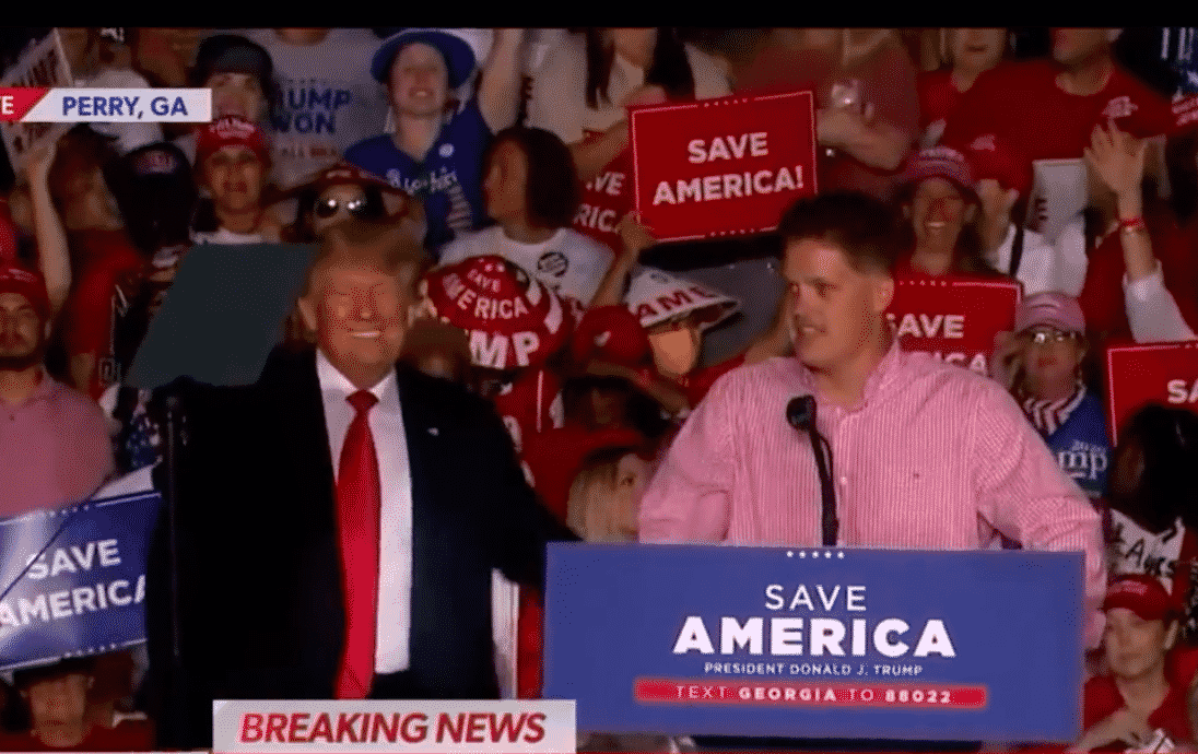 Trong buổi vận động tại Perry, bang Georgia vào tối 25/9, cựu Tổng thống Donald Trump đã ca ngợi một binh sĩ Thủy quân Lục chiến Hoa Kỳ, người được chụp ảnh kéo một em bé Afghanistan qua bức tường sân bay Kabul. Ông Trump đã mời người lính này lên sân khấu.