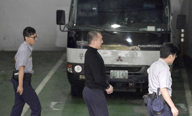 Cảnh sát Đài Loan áp tải ông Zhou Hongxu (giữa) đến phiên tòa hôm thứ Sáu (15/9).