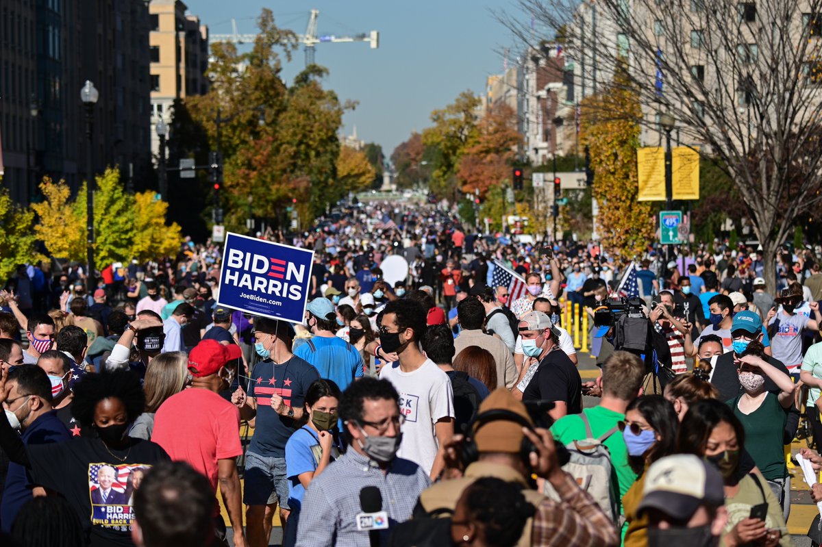 Hàng trăm nghìn người ủng hộ ông Biden đã xuống đường, tụ tập thành những đám đông lớn ở New York, Washington và Philadelphia. Các buổi lễ ăn mừng náo nhiệt đã diễn ra mà không có giãn cách xã hội.
