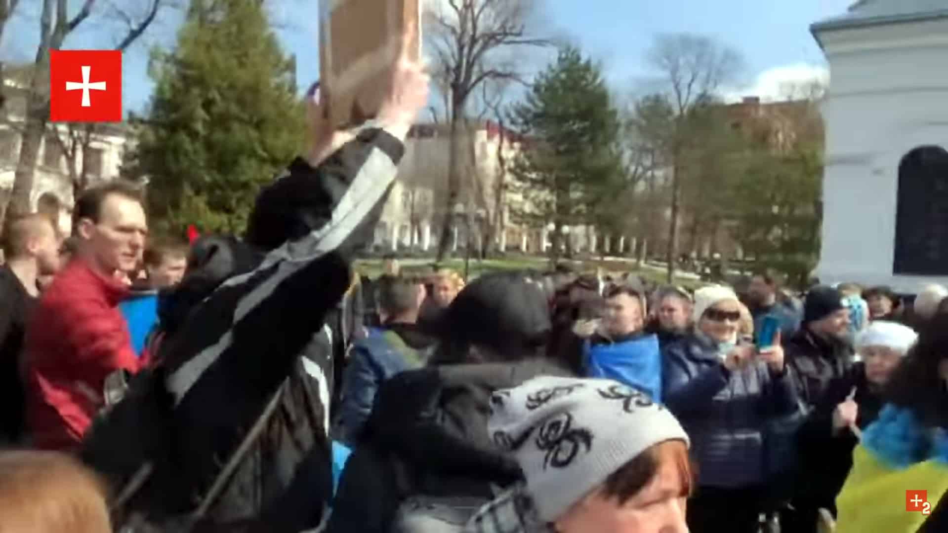 Trong những ngày này, truyền thông Ukraine trình chiếu những cảnh chiến sỹ đang phải vất vả ở chiến trường, cùng với những cảnh tu sỹ và các tín đồ UOC kiên quyết bám trụ bảo vệ một số nhà thờ hay tu viện của họ —như Tu viện Các hang động ở Kyiv— và những cảnh nhiều nhà thờ khác của UOC bị đổi chủ nhanh chóng sang giáo hội mới OCU. Truyền thông miêu tả sự đổi chủ này là ‘nhân dân’ đang được “giải phóng” khỏi các tu sỹ thân Nga, đang thoát khỏi “tinh thần Nga”.