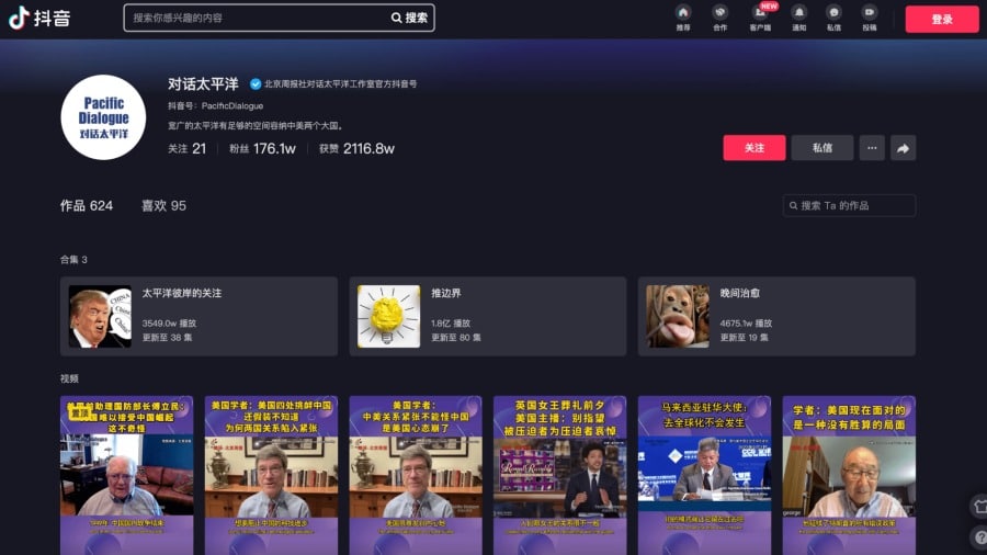 Báo cáo đặc biệt đề cập đến tài khoản Tik Tok “Đối thoại Thái Bình Dương”, có vẻ như đây là một kho lưu trữ trung tâm cho hơn 600 video chống Mỹ.