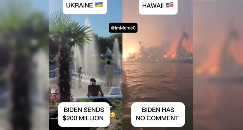 Tổng thống Mỹ Joe Biden vừa duyệt 200 triệu đô la vũ khí cho Ukraine, trong khi ông ta chỉ chi 700 đô la cho 1 hộ gia đình gặp nạn ở Hawaii. Các cảnh sung sướng ở Ukraine (như Odessa trong ảnh) so sánh với Hawaii như thế này hiện đang có rất nhiều trên mạng xã hội thể hiện dân Mỹ rất bức xúc.