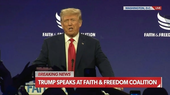 Ông Trump phát biểu trong chương trình do Liên minh Tín ngưỡng và Tự do tổ chức tại Washington DC vào tối 24/6. (Ảnh chụp màn hình video)