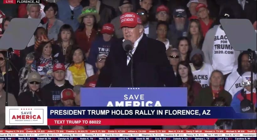 “Làn sóng đỏ sẽ bắt đầu ngay tại Arizona này đây, và nó sẽ càn quét khắp đất nước này”, ông Trump nói và nhấn mạnh về tầm quan trọng trước hết của các cuộc bầu cử giữa nhiệm kỳ năm 2022, qua đó Đảng Cộng hòa trở lại chiếm thế đa số ở cả Hạ viện và Thượng viện liên bang.