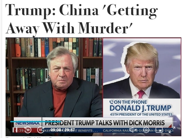 Donald Trump nói với Newsmax TV: Trung Quốc ‘đang thoát tội’