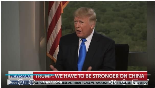 Trả lời phỏng vấn Newsmax TV, ông Trump cho biết khả năng mua chuộc gây hại của Trung Quốc đã giúp chế độ này làm lu mờ tội đồng lõa của mình trong việc làm lây lan đại dịch virus corona Vũ Hán ra toàn cầu.