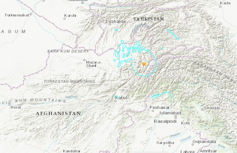 USGS cho biết trận động đất có tâm chấn gần Jurm ở đông bắc Afghanistan và có độ sâu 187km.
