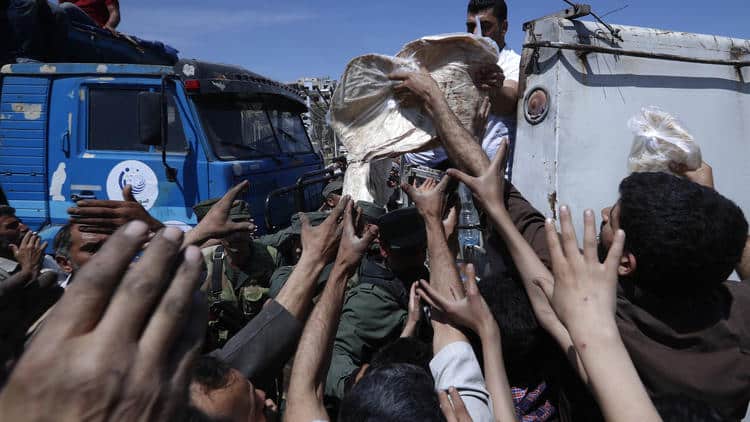 “Đây là lần đầu tiên sau nhiều năm, tôi sẽ được ăn bánh mì lúa mì”, nam thanh niên Naim Saqour, 18 tuổi, chia sẻ với AP sau khi nhận được 9 ổ bánh mì Ả Rập từ nhân viên chính phủ. Saqour nói thêm rằng cậu và gia đình đã sống sót ngày qua ngày trong vài tháng qua nhờ vào olive và một ít bánh mì lúa mạch.