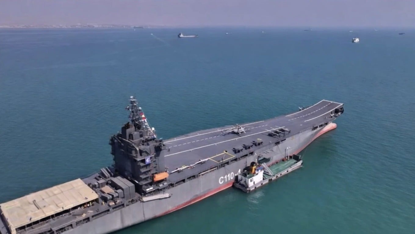 Tàu sân bay không người lái mới do Iran tự phát triển “Shahid Bahman Bagheri”. (Ảnh chụp màn hình video)