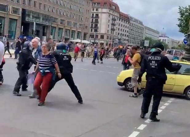 Phía cảnh sát Berlin lại thông báo trên mạng xã hội: “Họ [những người biểu tình] cố gắng vượt qua hàng rào cảnh sát và kéo đồng nghiệp của chúng tôi ra. Điều này đã dẫn đến việc [cảnh sát phải] sử dụng hơi cay, dùi cui và vũ lực.”
