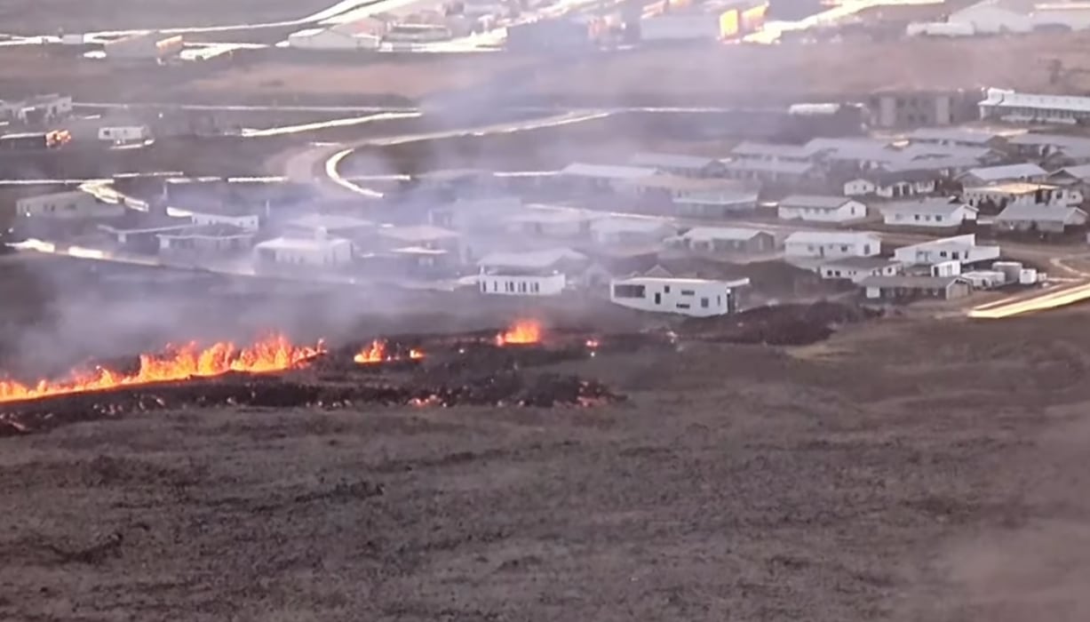 Theo đoạn video giám sát do đài truyền hình quốc gia Iceland phát sóng, một ngọn núi lửa ở phía tây nam tiếp tục phun trào và dung nham chảy vào làng chài địa phương Grindavik khiến hai ngôi nhà bốc cháy. Người dân địa phương đã được sơ tán nhưng vẫn có những đàn cừu vẫn bị nhốt trong chuồng.
