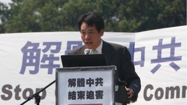 Ông Đường Bách Kiều phát biểu tại sự kiện thoái đảng. (Nguồn: Conscience Media).