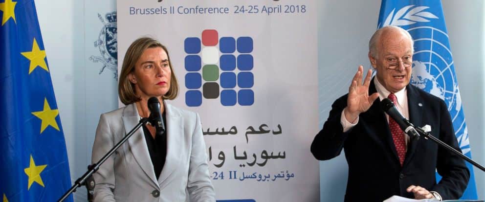 Nhân dịp các nhà tài trợ quốc tế nhóm họp tại Brussels để tăng cường hỗ trợ nhân đạo cho Syria, Giám đốc chính sách đối ngoại Liên minh Châu Âu (EU) Federica Mogherini đã kêu gọi Nga, Iran và Thổ Nhĩ Kỳ ngừng bắn tại đất nước đã bị cuộc nội chiến tàn phá hơn 7 năm qua.