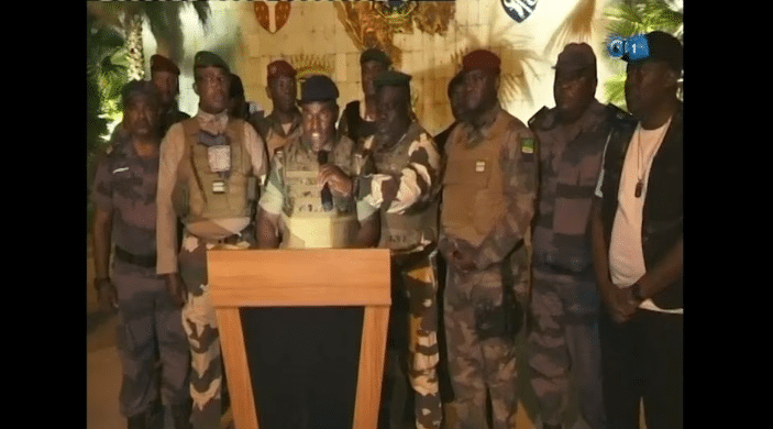 Các sĩ quan quân đội Gabon, tự phong họ là Ủy ban Chuyển tiếp và Khôi phục Thể chế, tuyên bố rằng đất nước đã phải đối mặt với “cuộc khủng hoảng thể chế, chính trị, kinh tế và xã hội nghiêm trọng” và rằng cuộc bầu cử 26/8 là không đáng tin cậy.