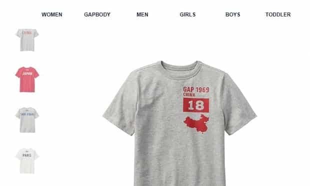 Xin lỗi của GAP đến sau khi một cá nhân đăng tải các bức ảnh về áo phông GAP lên mạng xã hội Weibo của Trung Quốc nói rằng những chiếc áo của GAP có in bản đồ trong đó các vùng lãnh thổ mà Trung Quốc tuyên bố chủ quyền như nam Tây Tạng, đảo Đài Loan và biển Đông đều bị bỏ qua. Người dùng này nói thêm rằng áo phông của GAP in bản đồ “sai sót” này được bán trong các cửa hàng bán lẻ của hãng thời trang Mỹ tại Canada.