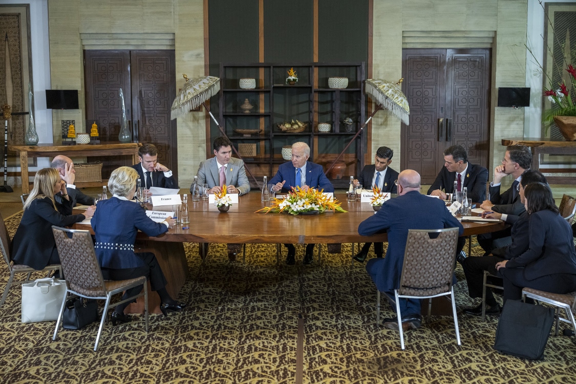 TT Biden và các nhà lãnh đạo NATO ở G20 họp bàn sau khi tên lửa được cho là của Nga tấn công Ba Lan (Ảnh: Twitter Joe Biden)