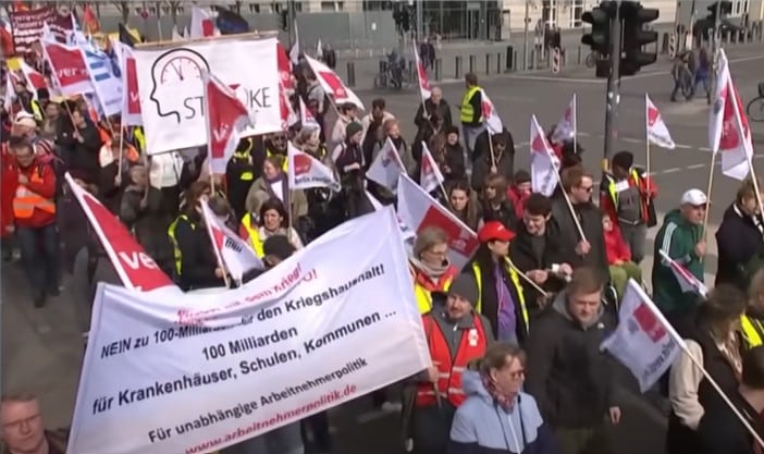 Giao thông Đức tê liệt do đình công lớn trong bối cảnh lạm phát tăng vọt (Ảnh chụp màn hình video)
