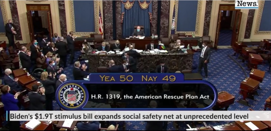 Thượng viện Mỹ do đảng dân chủ chiếm đa số cuối tuần qua đã chuẩn thuận dự luật cứu trợ COVID 1,9 nghìn tỷ. Dự luật này sẽ được chuyển lại Hạ viện để thông qua bản sửa đổi tương ứng và tiếp đó cần Tổng thống Joe Biden ký thành luật.