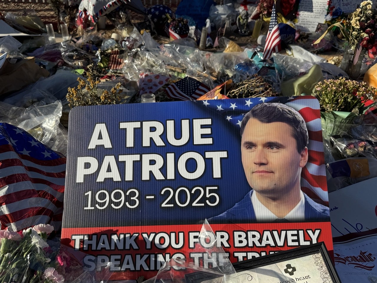 Ngày 20/9/2025, một lượng lớn người dân đã đổ về bên ngoài trụ sở "American Turning Point" tại Phoenix, Arizona, để tưởng niệm nhà hoạt động bảo thủ nổi tiếng của Mỹ, Charlie Kirk, theo nhiều cách khác nhau. (Ảnh: Jiang Linda / Epoch Times)