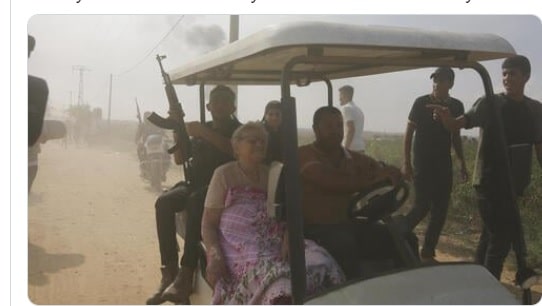 Yaffa Adar 85 years old. One of the founders of Kibbutz Nir Oz was kidnapped by Palestinian terrorists who were not from Hamas and has been kept in captivity for the last 48 days will be imminently reunited with her family. pic.twitter.com/dRgOSlxOGa