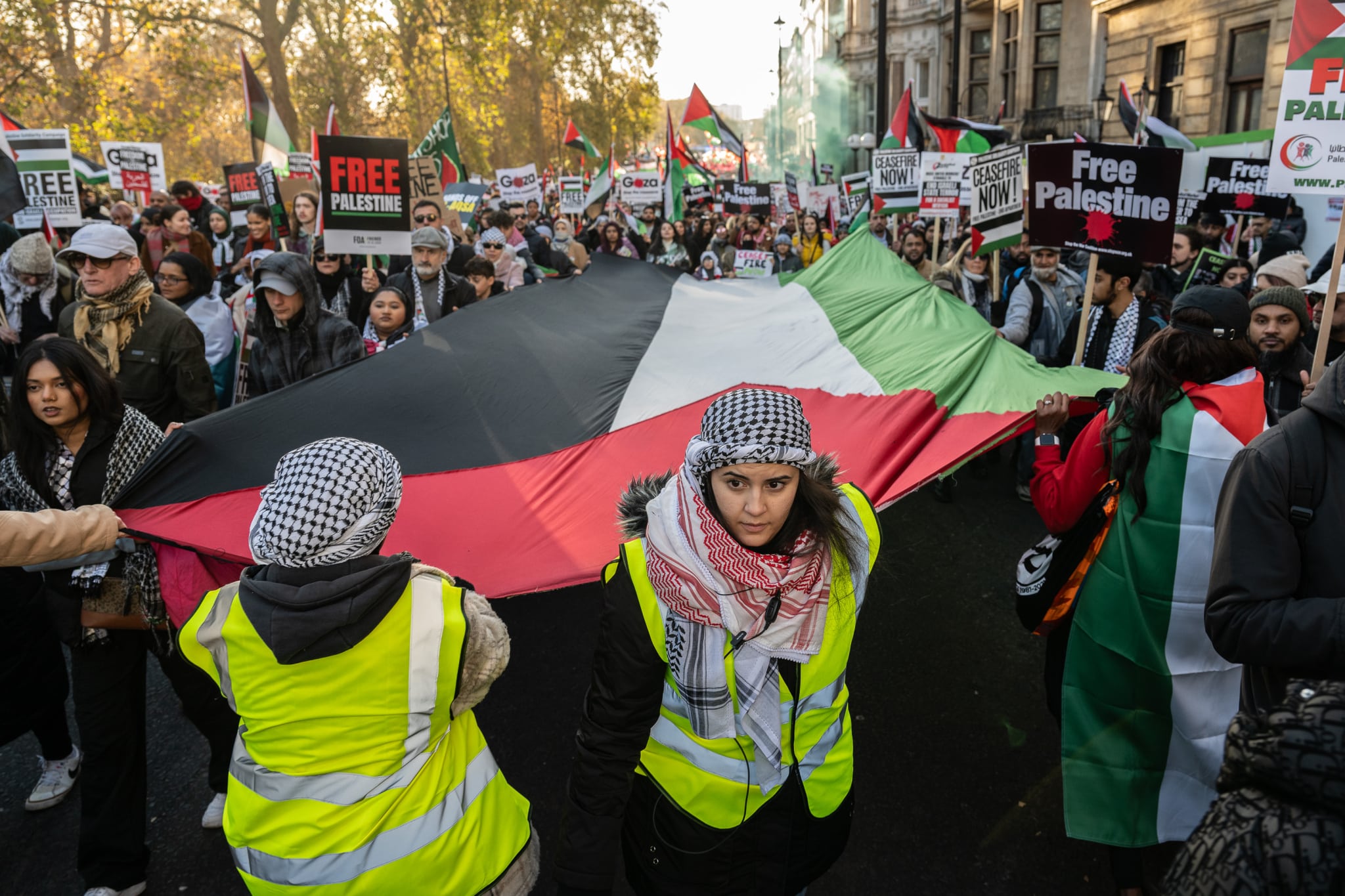 Hàng chục nghìn người biểu tình ủng hộ Palestine đã tuần hành qua trung tâm London hôm thứ Bảy (25/11) để kêu gọi ngừng bắn vĩnh viễn ở Dải Gaza. Đây là cuộc biểu tình mới nhất trong một loạt các cuộc biểu tình cuối tuần ở thủ đô nước Anh kể từ khi cuộc chiến Israel – Hamas bắt đầu, đến nay đã sang tuần thứ bảy.