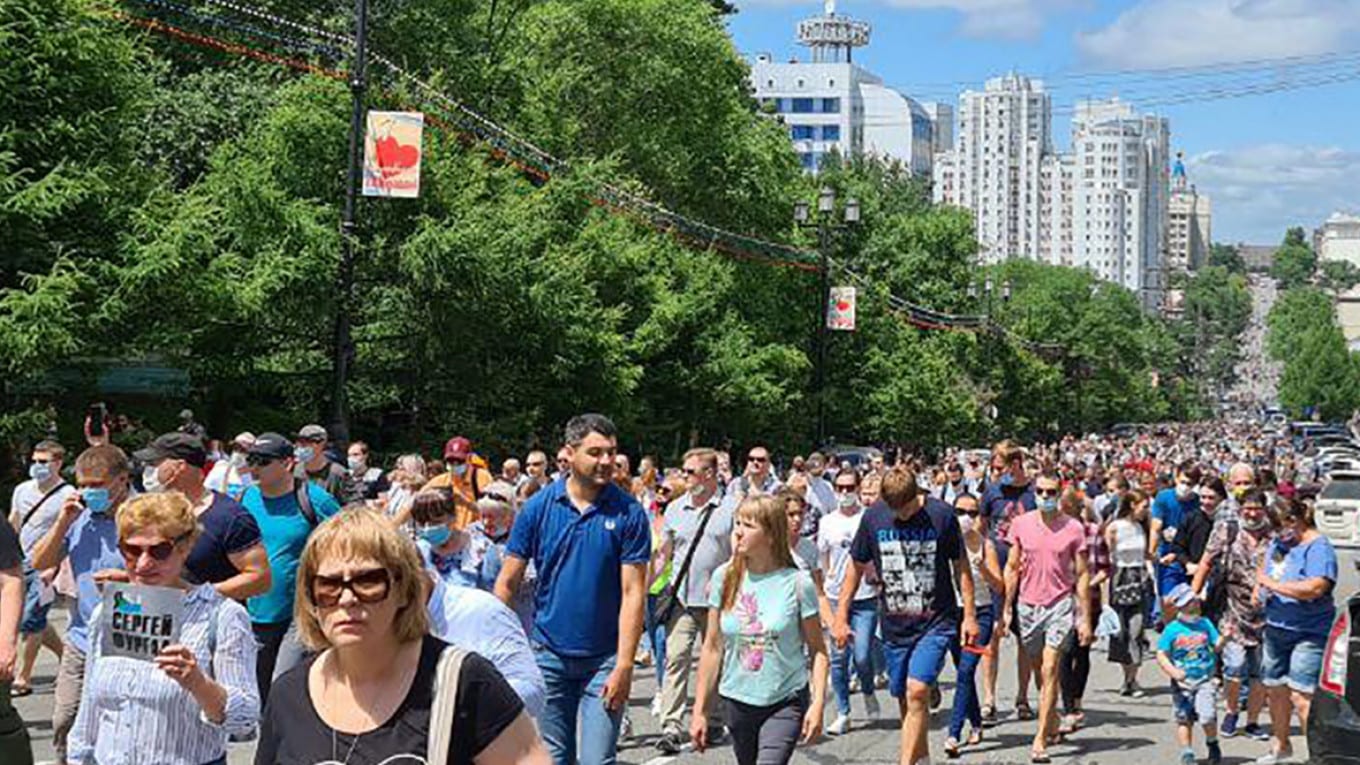 Theo AP, cuộc biểu tình tại Khabarovsk hôm 12/7 có sự tham gia của khoảng 35.000 người. Mọi người xuống phố hô lớn các khẩu hiệu chống Tổng thống Putin.