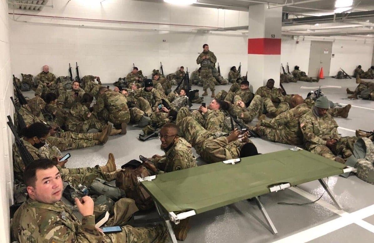 Trước đó, tờ Politico đã báo cáo đầu tiên về vụ việc. Bài báo cho hay hàng nghìn quân đã bất ngờ được lệnh rời khỏi Điện Capitol và nghỉ ngơi trong hầm đậu xe gần đó – một địa điểm không có kết nối internet, không có thiết bị sưởi khi nhiệt độ ban đêm chỉ khoảng 4 độ C. Ngoài ra, nó chỉ có 1 ổ cắm điện và một phòng tắm chung cho khoảng 5.000 người.