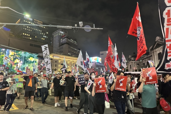 Vào mỗi thứ Ba và thứ Sáu hằng tuần, tại khu vực trước Bưu điện Trung tâm Seoul – cách Đại sứ quán Trung Quốc tại Hàn Quốc ở Myeongdong chỉ một con phố – lại diễn ra những cuộc tập hợp phản đối quy mô lớn. Hàng ngàn người dân Hàn Quốc, bao gồm sinh viên đại học, cựu chiến binh, người về hưu… tập trung về đây, giương cao biểu ngữ bằng chữ Hán phồn thể “Trời diệt Trung Cộng”, hô vang “CCP OUT” (ĐCSTQ cút), vẫy cờ Hàn Quốc và Hoa Kỳ, đánh trống và diễu hành dọc theo con phố phía trước Đại sứ quán Trung Quốc.