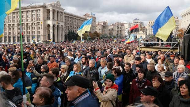 Hàng nghìn người dân đã tập trung tại quảng trường chính tại thủ đô Kiev, Ukraine hôm Chủ Nhật (6/10) để biểu tình phản đối thỏa thuận của Tổng thống Volodymyr Zelenskiy với Nga về trao quyền tự trị cho khu vực miền đông Ukraine đang do phiến quân thân Nga kiểm soát.